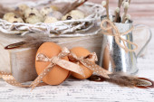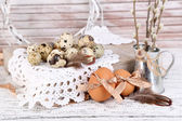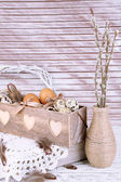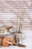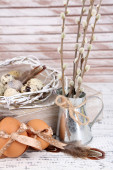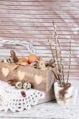 piękną kompozycję Wielkanocnej na drewnianym stole