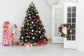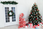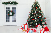 Grudzień choinka sosna z prezentami Nowy rok wystrój wnętrz