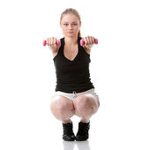 dziewczynka młody piękny fitness ćwiczenia z krzesłem w siłowni