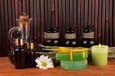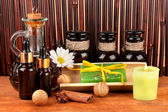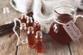 Historyczne stare butelki apteczne z etykietą na drewnianym tle