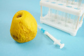 daje zastrzyk na zgniłe koncepcja medyczna, pomarańczowy