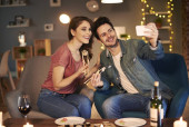 Zdjęcie "Szczęśliwa para wznieść toast świąteczny na wideo połączenie " może być wykorzystywane do celów osobistych i komercyjnych zgodnie z warunkami zakupionej licencji Royalty-free. Obraz jest dostępny do pobrania w jakości wysokiej rozdzielczości do 5760x3840.