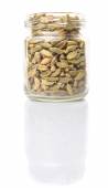 widok z góry kiełkowania soczewica rośnie w słoiku