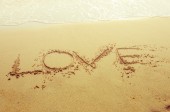 Słowo miłosne na Wybrzeżu Piasku. Wspaniałe słowa na piasku plażowym. Pomysł na miłość