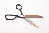 Bardzo ostre nożyczki retro profesjonalny krawiec, izolowane na białym tle