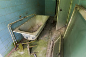 Zdjęcie "Łazienka w opuszczonym domu sowieckiego miasta duchów Czarnobyl-2 w pobliżu kompleksu radarowego Duga, post apokaliptyczne miasto, strefa wykluczenia Czarnobyla, Ukraina" może być wykorzystywane do celów osobistych i komercyjnych zgodnie z warunkami zakupionej licencji Royalty-free. Obraz jest dostępny do pobrania w jakości wysokiej rozdzielczości do 5760x3840.