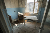 Łazienka w opuszczonym domu sowieckiego miasta duchów Czarnobyl-2 w pobliżu kompleksu radarowego Duga, post apokaliptyczne miasto, strefa wykluczenia Czarnobyla, Ukraina