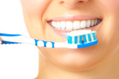 kobieta zbliżenie zdrowy ząb ze szczoteczka do zębów na czarnym tle