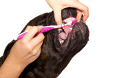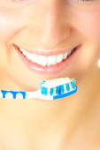 kobieta zbliżenie zdrowy ząb ze szczoteczka do zębów na czarnym tle