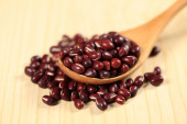 Czarna fasola jest na drewnianym stole.