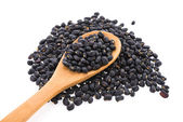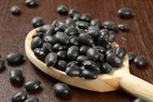 Czarna fasola jest na drewnianym stole.