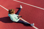 fitness na świeżym powietrzu, publiczne boisko sportowe. Młoda sportowiec ćwiczy na ulicy.,