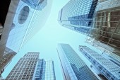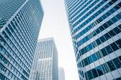 Nowoczesne szklane sylwetki wieżowców w mieście