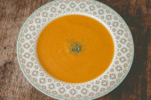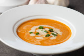 talerz biszkoptu z homara ozdobiony odrobiną śmietany i krewetek