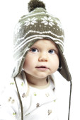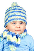 zbliżenie portret uroczy mały chłopiec w zimie ubrania, izolowane na białym