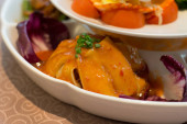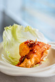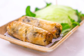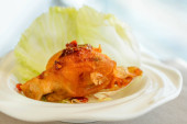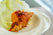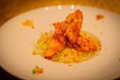 danie główne Głęboko smażone ostrygi w sałacie Cup serwowane w białej porcelany porcelany miski