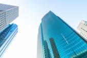 Nowoczesne szklane sylwetki wieżowców w mieście