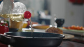 Dziewczyna przesiewa mąkę na smaczne ciasteczka na Boże Narodzenie