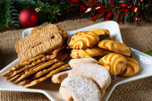 Różne rodzaje herbatników z rustykalnymi dekoracjami świątecznymi