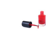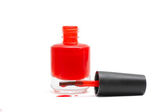 Czerwony lakier do paznokci izolowany na białym tle.