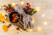 Kobiece dłonie ze szklanymi filiżankami smacznego grzanego wina na białym tle
