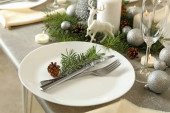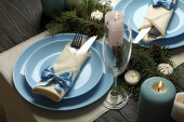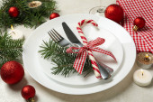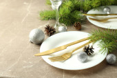 Zdjęcie "Koncepcja romantycznego nakrycia stołu noworocznego na szarym stole" może być wykorzystywane do celów osobistych i komercyjnych zgodnie z warunkami zakupionej licencji Royalty-free. Obraz jest dostępny do pobrania w jakości wysokiej rozdzielczości do 5760x3840.
