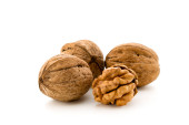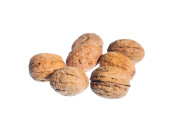 Dojrzałe orzechy włoskie izolowane na białym tle