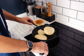 Zdjęcie "Człowiek smażący naleśniki na patelni w kuchni." może być wykorzystywane do celów osobistych i komercyjnych zgodnie z warunkami zakupionej licencji Royalty-free. Obraz jest dostępny do pobrania w jakości wysokiej rozdzielczości do 5760x3840.