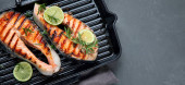 Łosoś z grilla ze świeżą sałatką. Helathy koncepcja jedzenia. Widok z góry, przestrzeń kopiowania