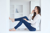 Zdjęcie "Millenijna kobieta komunikuje się z przyjaciółmi, klientami korzystającymi z portali społecznościowych. Biznes kobieta pracuje z domu biura" może być wykorzystywane do celów osobistych i komercyjnych zgodnie z warunkami zakupionej licencji Royalty-free. Obraz jest dostępny do pobrania w jakości wysokiej rozdzielczości do 5760x3840.