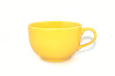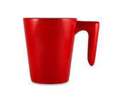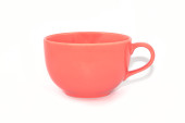 Zestaw kolorowych kubków na białym tle