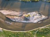 Widok z lotu ptaka na zbiornik wodny Pyasachnik (piaskowiec), Sredna Góra, obwód płowdiwski, Bułgaria
