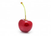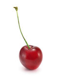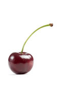 Czerwona dojrzała wiśnia słodka z korzeniem na białym tle