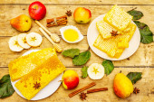 Zdjęcie "Rosz Hashanah koncepcja uroczystości z tradycyjnymi symbolami. Żydowski Nowy Rok ze świeżymi jabłkami i gruszkami, płynnym miodem i plastrami miodu. Jasny kamień beton tło, widok z góry" może być wykorzystywane do celów osobistych i komercyjnych zgodnie z warunkami zakupionej licencji Royalty-free. Obraz jest dostępny do pobrania w jakości wysokiej rozdzielczości do 5760x3840.