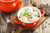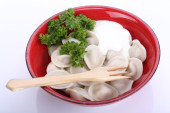Knedle z mięsem - rosyjski gotowane pelmeni bliska
