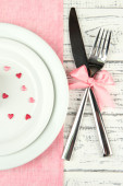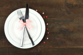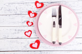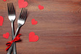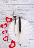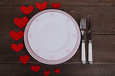 Walentynki obiad z tabeli Ustawienia na drewniany stół szczegół