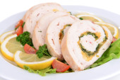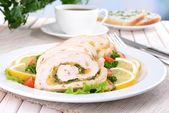 kurczaka pyszne roll na tabliczce na stół szczegół