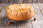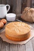 Domowej roboty tort gąbczasty na drewnianym stole, selektywna ostrość