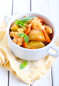 Zdjęcie "Pieczony kurczak z warzywami" może być wykorzystywane do celów osobistych i komercyjnych zgodnie z warunkami zakupionej licencji Royalty-free. Obraz jest dostępny do pobrania w jakości wysokiej rozdzielczości do 5760x3840.