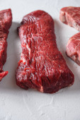 Surowy denver, w pobliżu maczety stek marmur wołowina na białym tle widok z góry zbliżenie.