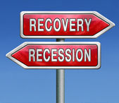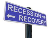 Znak drogowy z odzyskiwania i recesji słowo, 3d renderowania