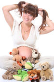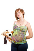 ciężarna kobieta z misiaczkiem.