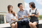 szczęśliwy młody Azji para relaks rozmowy na zewnątrz
