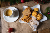 Różne rodzaje herbatników z rustykalnymi dekoracjami świątecznymi