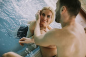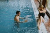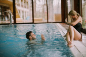 Zdjęcie "Piękna młoda para relaksująca się na basenie przy wewnętrznym basenie" może być wykorzystywane do celów osobistych i komercyjnych zgodnie z warunkami zakupionej licencji Royalty-free. Obraz jest dostępny do pobrania w jakości wysokiej rozdzielczości do 5760x3840.