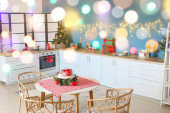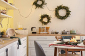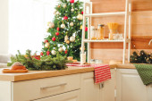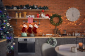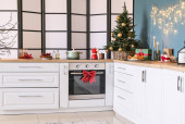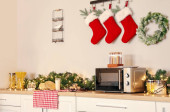 Wnętrze nowoczesnej kuchni urządzone na Boże Narodzenie