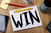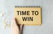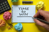 CZAS WYGRAĆ - słowa pisane na drewnianych blokach w pobliżu materiałów biurowych