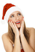 piękna młoda kobieta w czerwonym kapeluszu santa.
