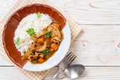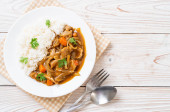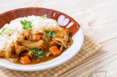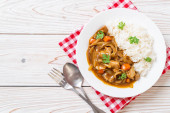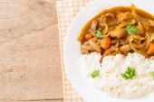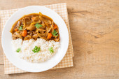 Japoński ryż curry z krojoną wieprzowiną, marchewką i cebulą - styl azjatycki
