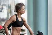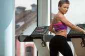 dziewczyna ćwiczenia na maszynie krok w klubie fitness